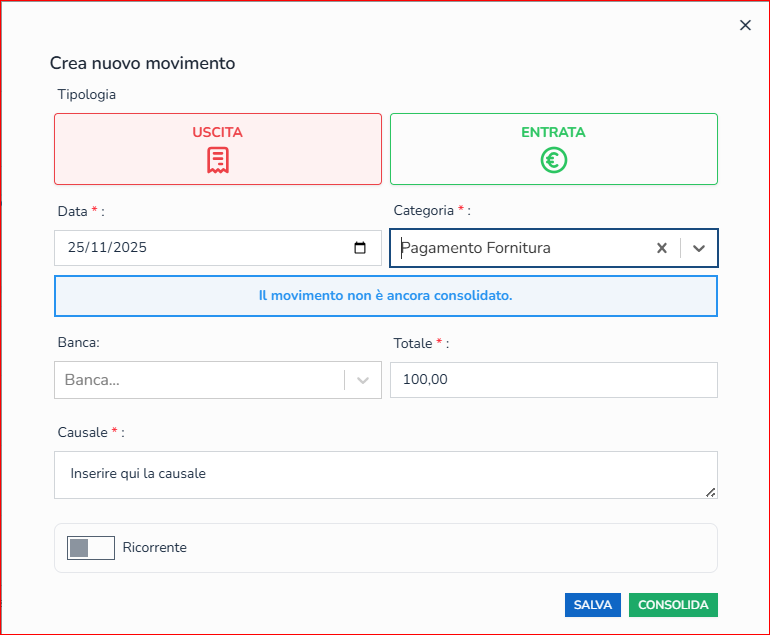 Per i movimenti ricorrenti consultare la sezione dedicata.