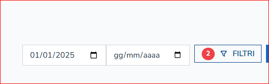 Di default è impostato il filtro al 1 gennaio dell’anno in corso, è possibile modificare l’intervallo di date nei due campi da/a disponibili in alto a destra nella schermata.