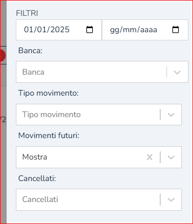 - Tipo movimento: filtrare solo entrate o solo uscite;