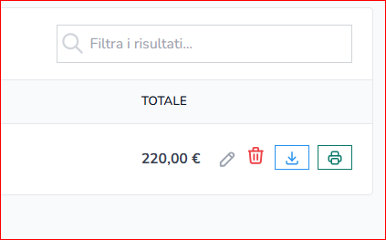 E’ possibile scaricare, rigenerare o modificare un preventivo: per scaricare cliccare sull’icona di download; per rigenerare il preventivo esistente con i nuovi dati della vendita aggiornati cliccare sull’icona “aggiorna”; per accedere al dettaglio del preventivo e modificarlo cliccare sull’icona a destra.