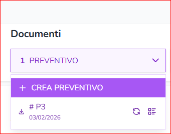 E’ possibile generare un nuovo preventivo dalla stessa vendita con nuovo progressivo cliccando sul tasto “+ CREA PREVENTIVO”.