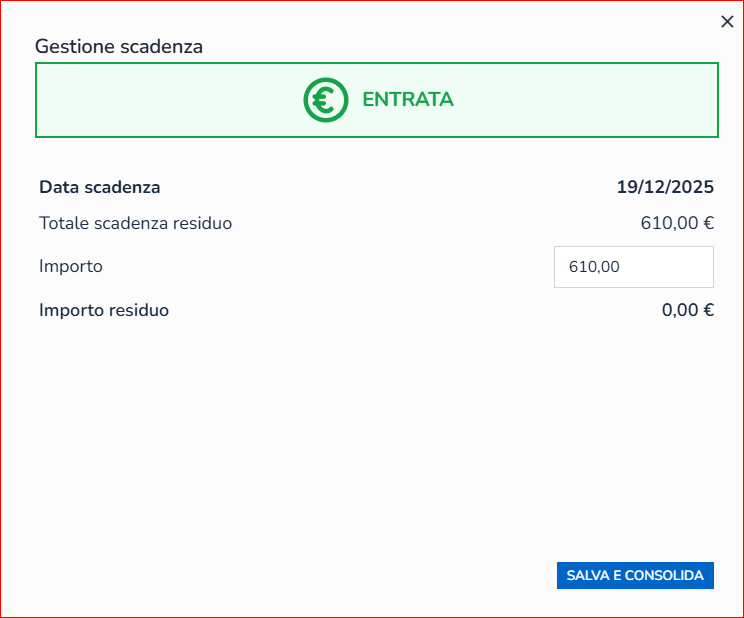 Per completare ed archiviare la scadenza cliccare su pulsante SALVA E CONSOLIDA.