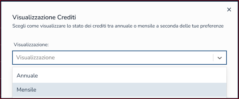 E’ possibile modificare la vista da annuale a mensile cliccando nell’icona a matina in alto a destra nel riquadro per cambiare la visualizzazione da annuale a mensile e viceversa.